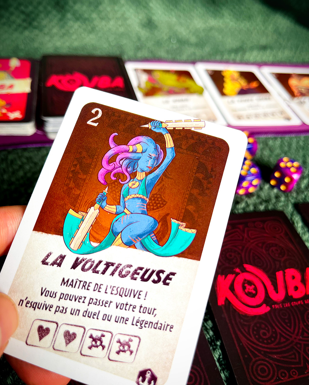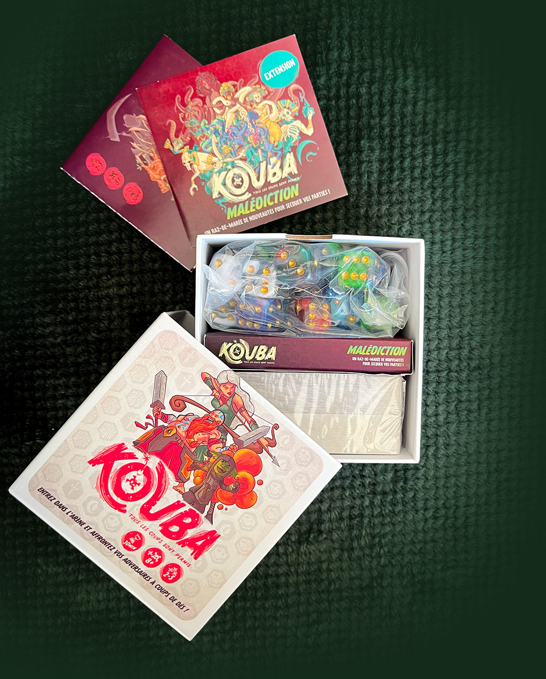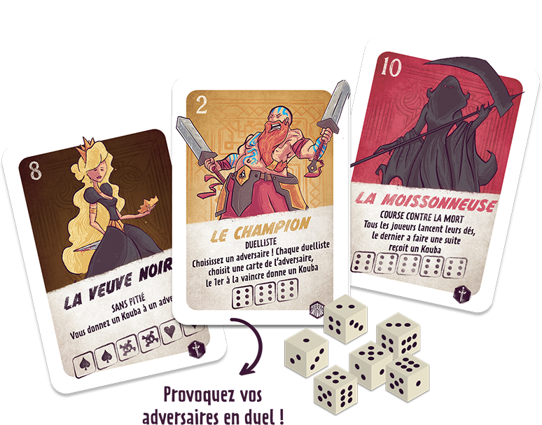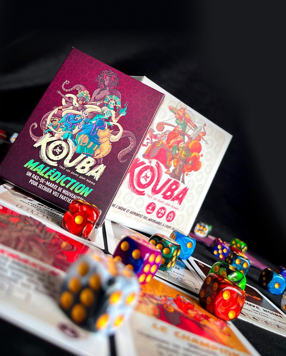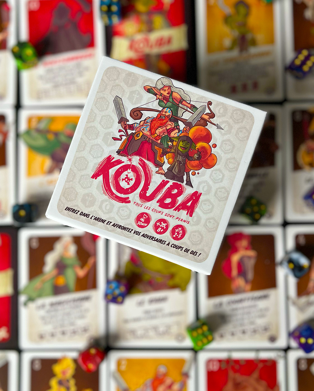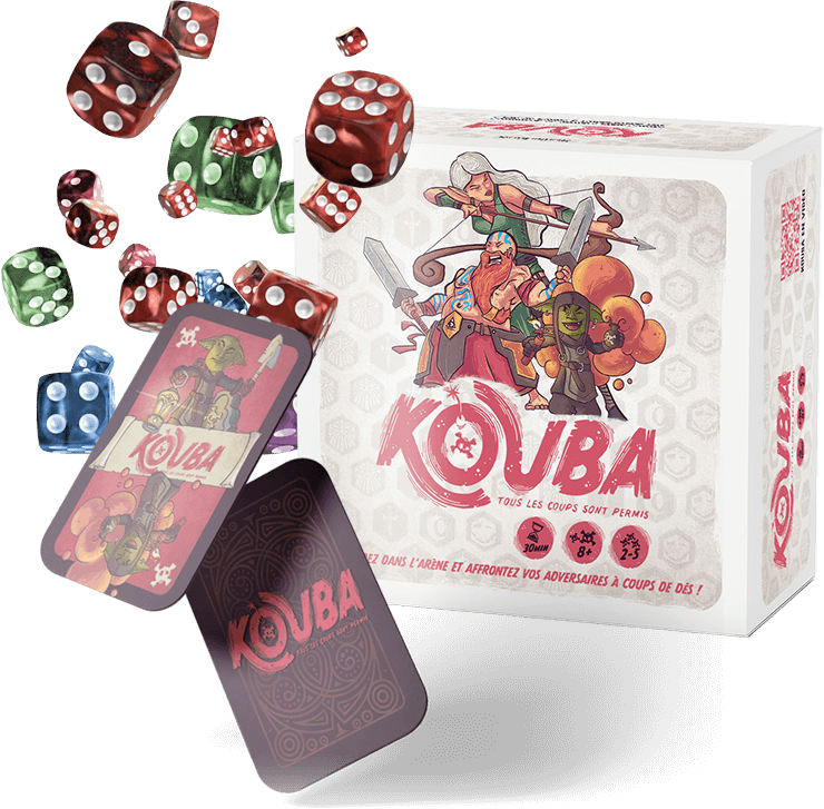 Le but est de battre le plus de champions à coups de dés pour cumuler un maximum de points de victoire. Attention, l’arène est semée d’embûches, et vos adversaires ne vous feront aucun cadeau. La partie se joue en 3 manches ou plus, à vous de décider. Chaque défaite vous coûtera un KOUBA. Le premier joueur à recevoir 4 KOUBA met fin à la manche. Comptez vos points de victoire et passez à la manche suivante.